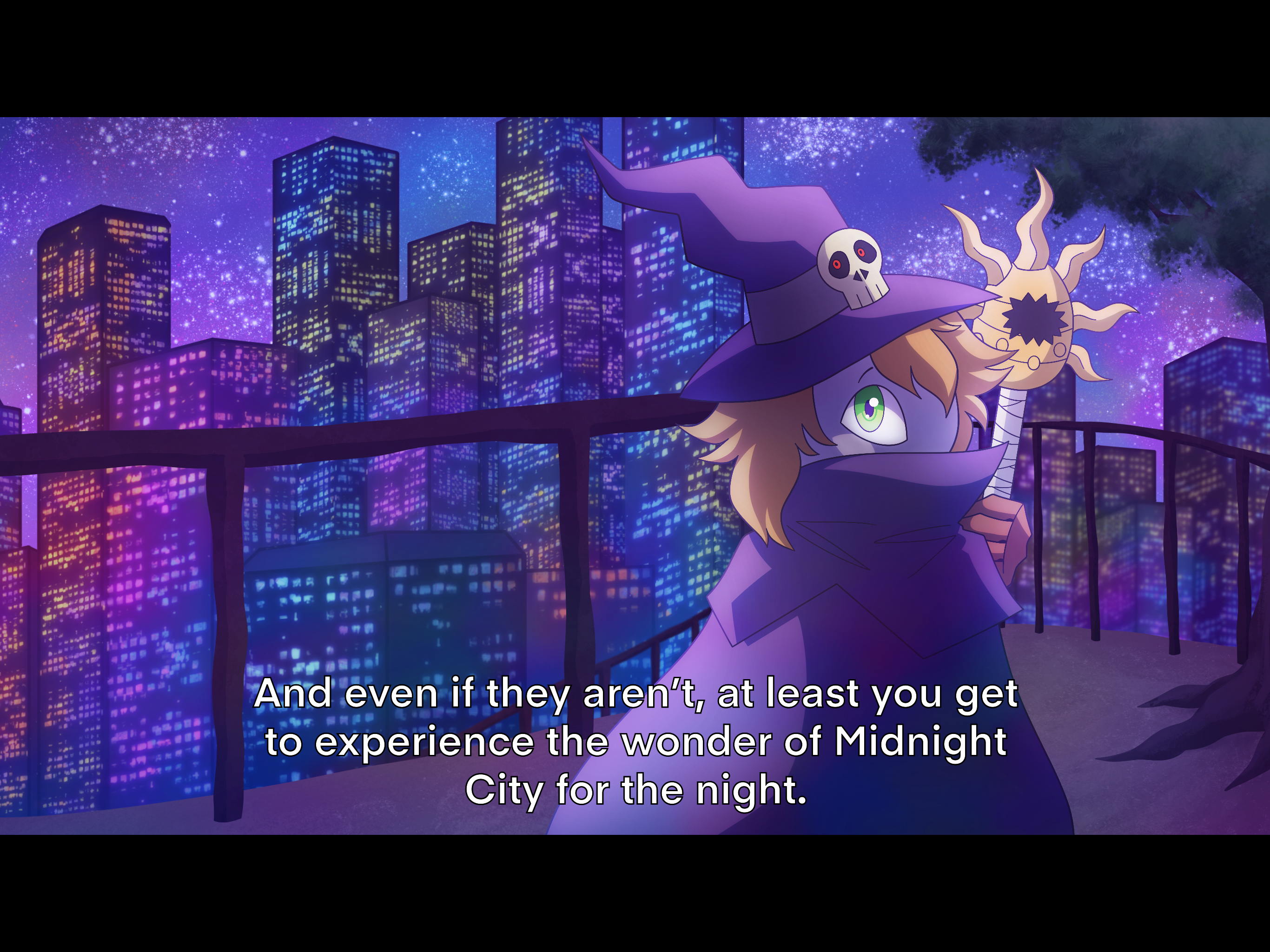 “No. Nighttime is signified by the darker sky, and the stars and moon. It’s what gives Midnight Isle its name.” She looked up at the sky, where the sun would be if it were still visible. “‘Daytime’ here is usually called lighttime, since it’s not exactly day but not exactly night. Mostly everyone who lives in the city is nocturnal and active at night, but there are a few who are awake during lighttime. It’s just that Midnight City’s culture is heavily centered around the nightlife. Clubs, bars, concerts. The likes.”