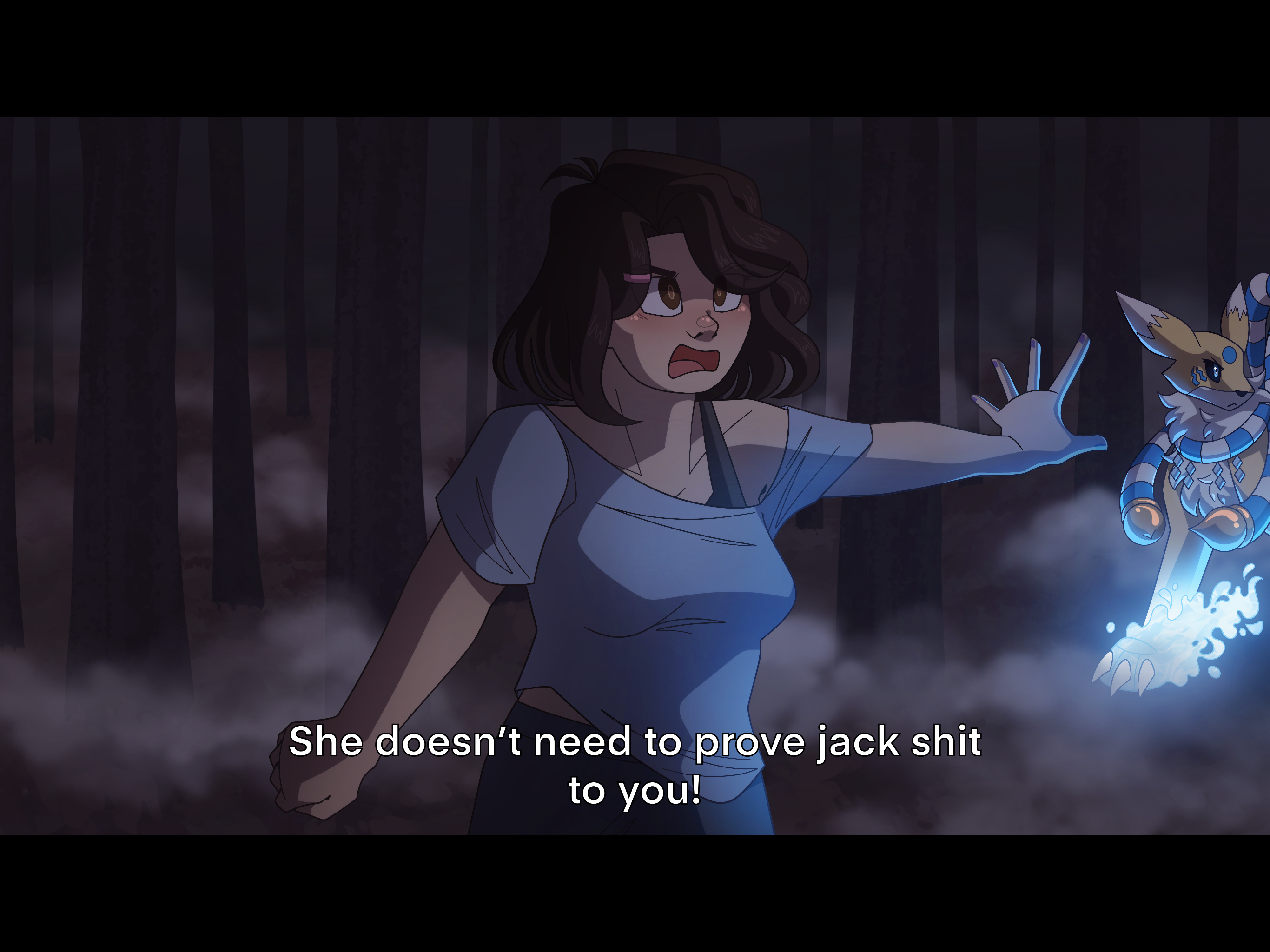 “Hey, asshole!” Harmony yelled, drawing both of the Digimon’s attention. “Ren’s been the best friend I could ever ask for! I wouldn’t have made it this far without her and that’s not just because she vowed to protect me! She’s loyal and devoted and she cares about everyone even if they upset her! ”