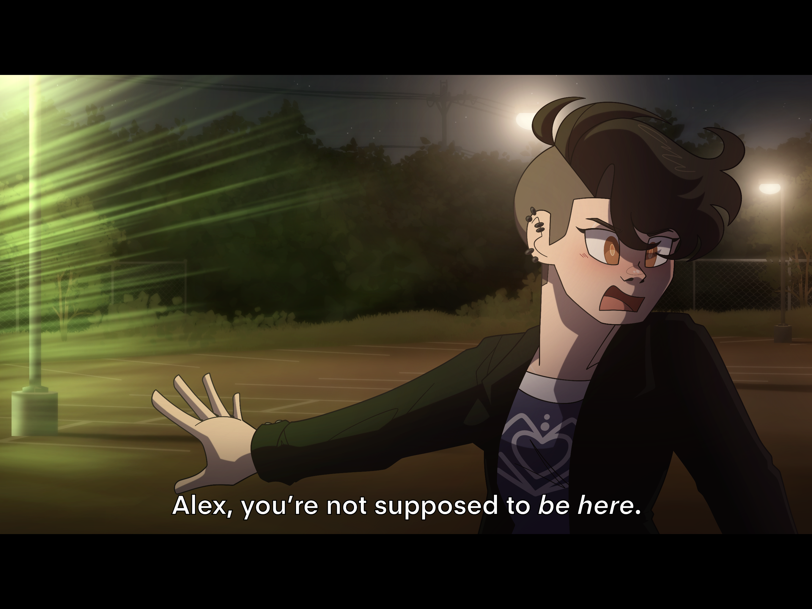 “I have to go,” Kiki mumbled, getting to her feet unsteadily. “It’s late. My parents are probably worried.” She smiled down at Alex, however faintly. “…I’m sorry for the trouble.”