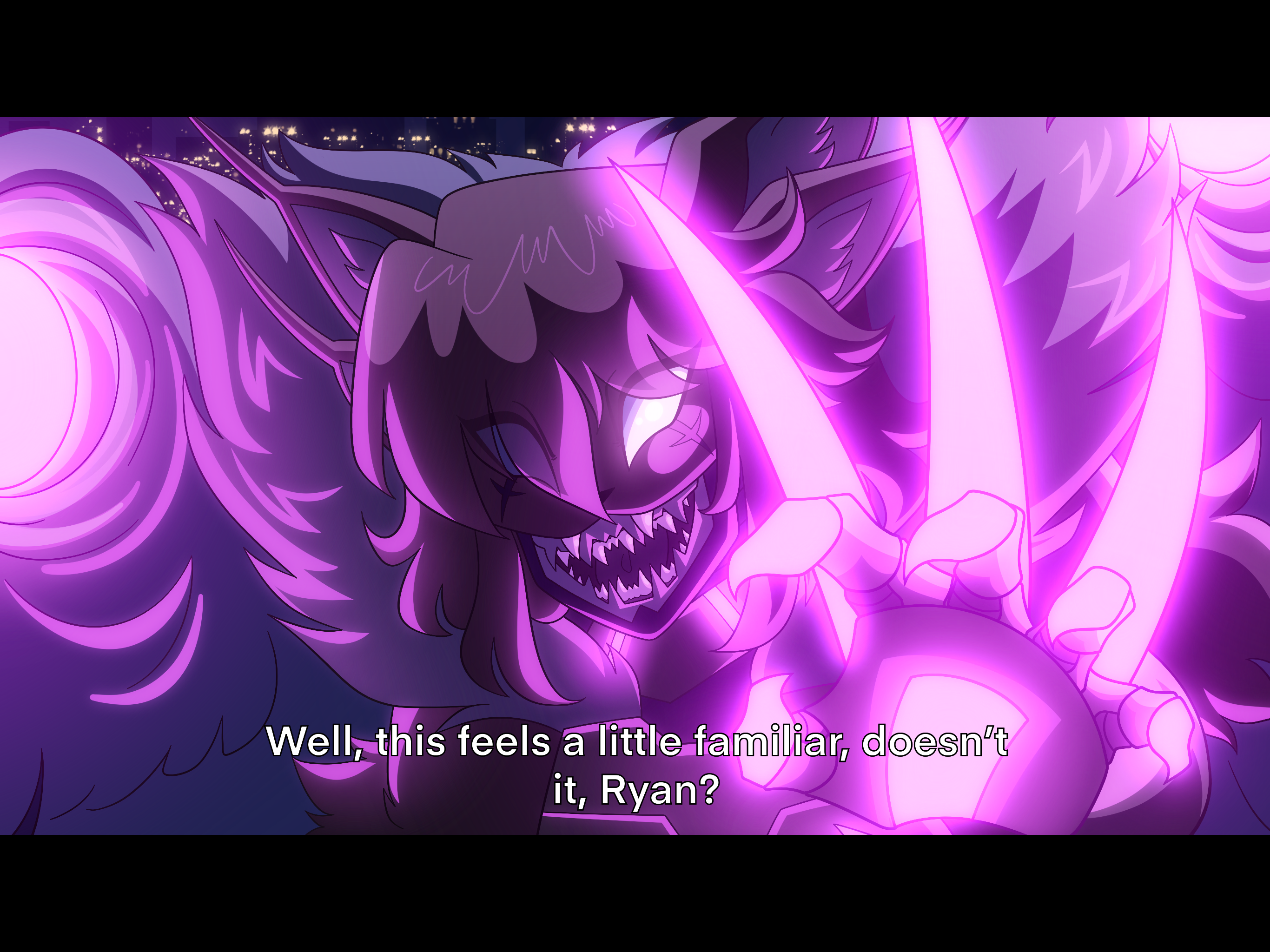 She raised a paw above his face and grinned. “Well, this feels a little familiar, doesn’t it, Ryan?”