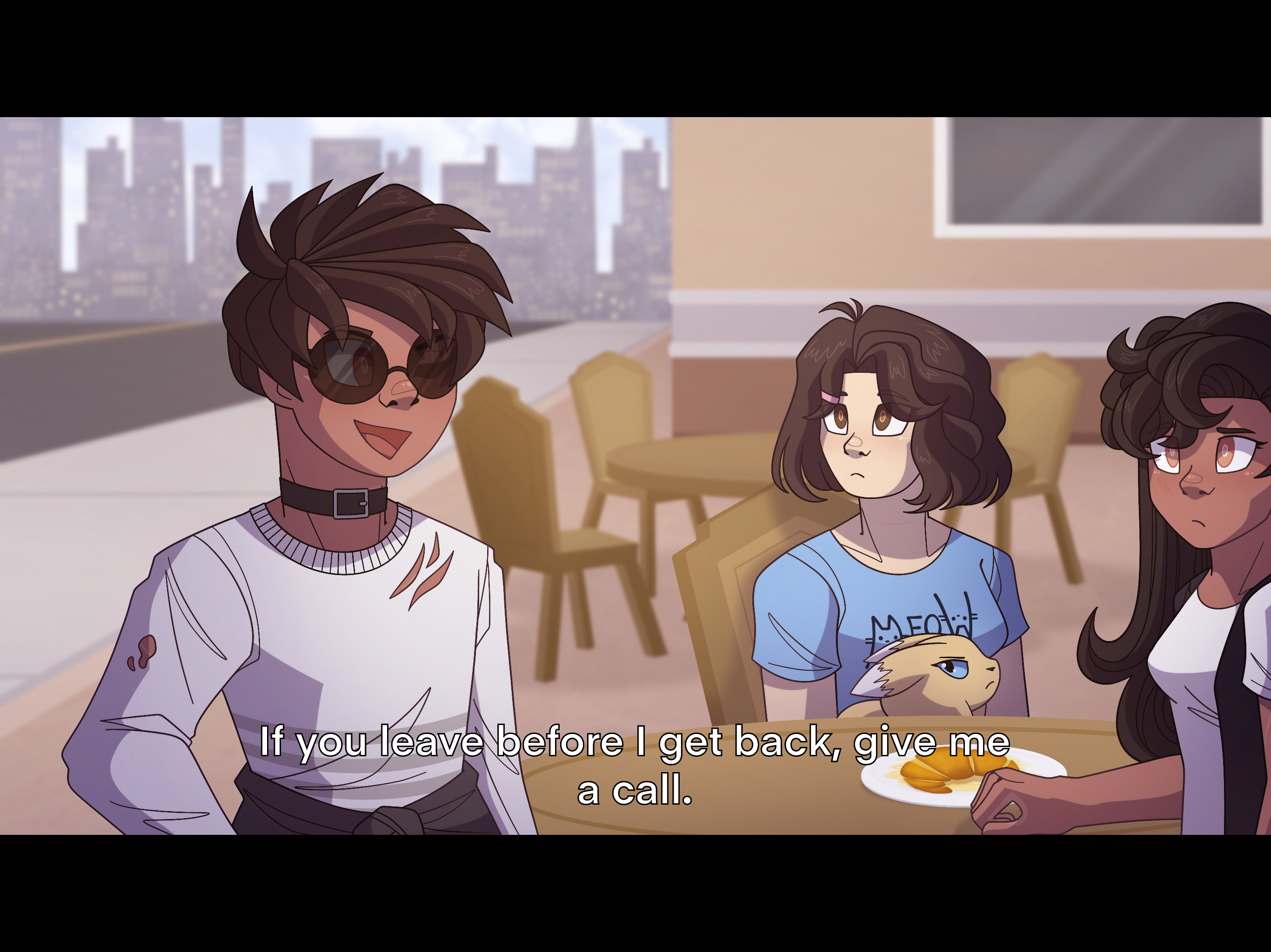 They wrapped up their meal shortly after, paying and leaving a decent tip, then packing up their food (as promised) and calling Damien (as requested). Harmony placed Ren on her shoulder in order to carry their boxes, while Moxie fished her digivice back out of her pocket and waited for Damien to pick up.