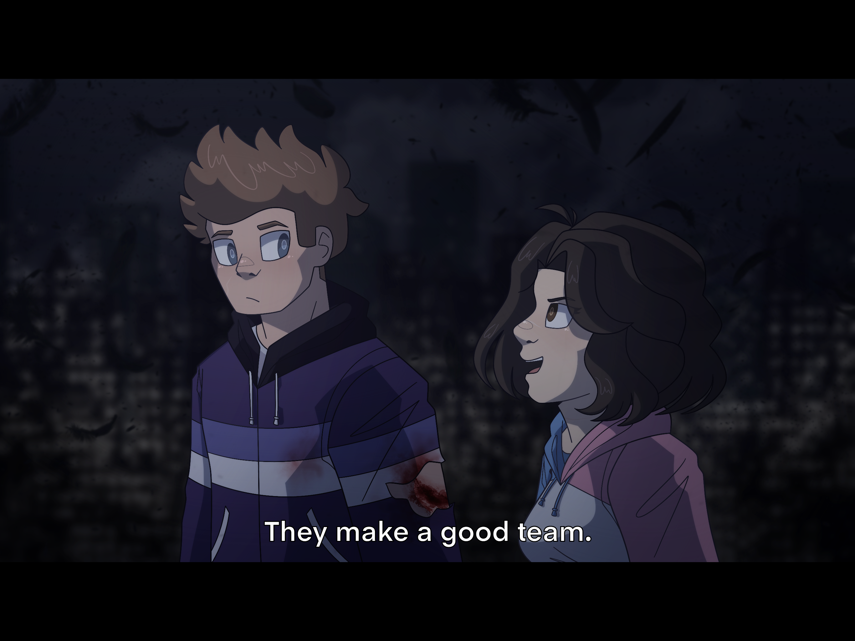 “They make a good team,” Harmony said from next to Ryan, and he blinked down at her. Her eyes were locked onto her partner, her brows furrowed in concentration, but there was a slight smile on her lips as she watched the fight play out from the safety of the alley they were hiding in.