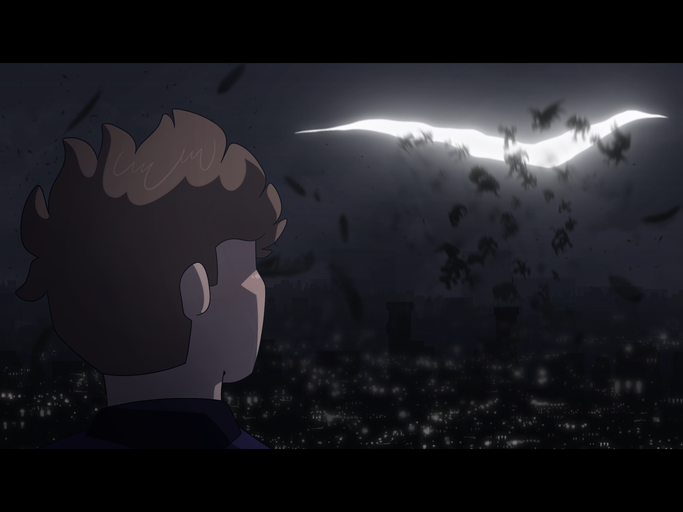 The silence that settled over them as they walked was different now. Maybe it was because of that cocktail of emotions surrounding them. Maybe it was the buildings they passed by, battered and bruised by the dark feathers that had laid siege upon them. Maybe it was because they could see Ordinemon now, his featureless face and his impossibly large wings and his helixed limbs. Maybe it was all of it. Maybe it didn’t really matter.